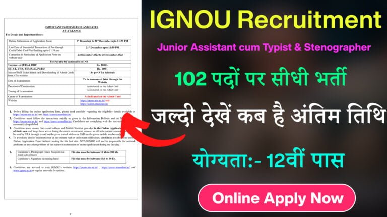 IGNOU Typist and Stenographer Recruitment: दोस्तों हाल ही में Indira Gandhi National Open University (IGNOU) के द्वारा Junior Assistant cum …