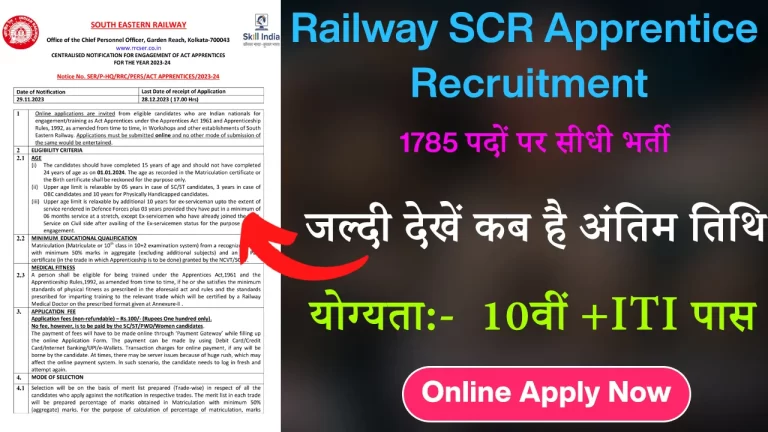 Railway SCR Kolkata Apprentice Recruitment: हाल ही में South Eastern Railway SER (SER) RRC SER Kolkata Region की ओर से नई …