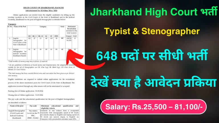Jharkhand High Court Recruitment: हाल ही में High Court of Jharkhand, Ranchi के तरफ से Typist और Stenographer पद के …