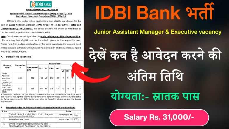 IDBI Junior Asst Manager & Executive Recruitment: दोस्तों हाल ही में Industrial Development Bank of India (IDBI) के द्वारा Junior …