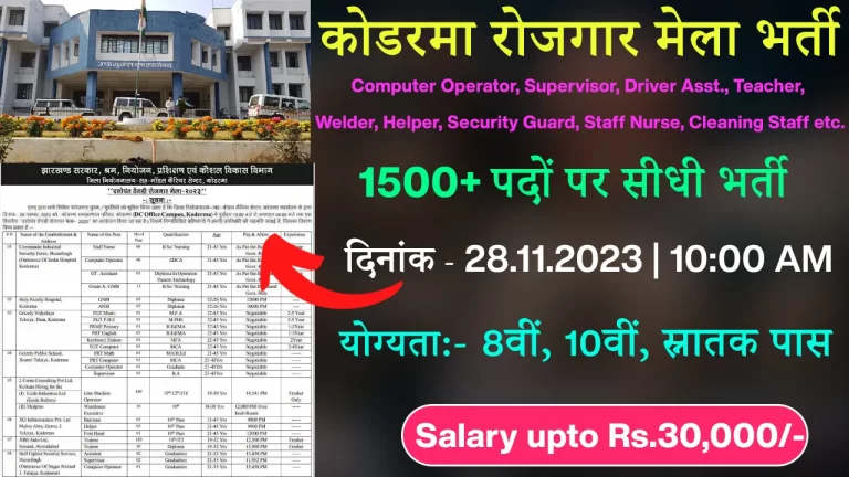 Koderma Rojgar Mela: कोडरमा जिला के सभी बेरोजगार युवाओं के लिए नौकरी पाने का सुनहरा मौका रोजगार मेला के तहत …