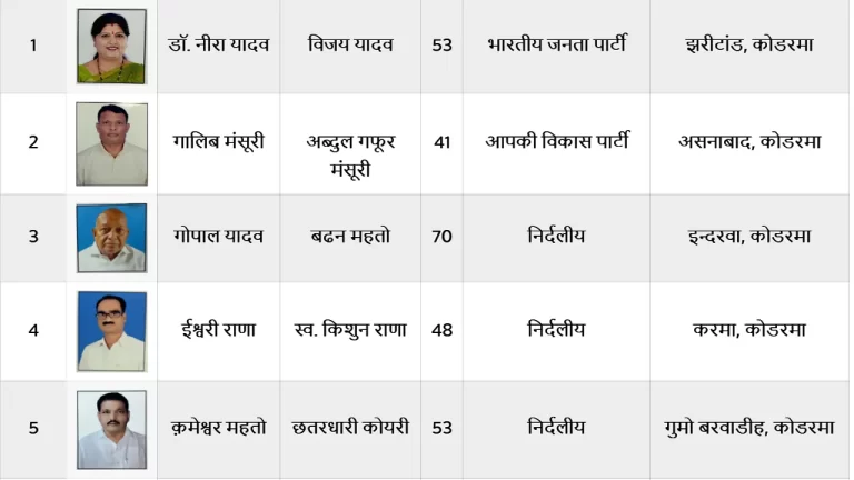 कोडरमा विधानसभा सीट के लिए इस बार कुल 19 उम्मीदवारों ने अपने नामांकन दाखिल किए हैं। इनमें प्रमुख दलों से …
