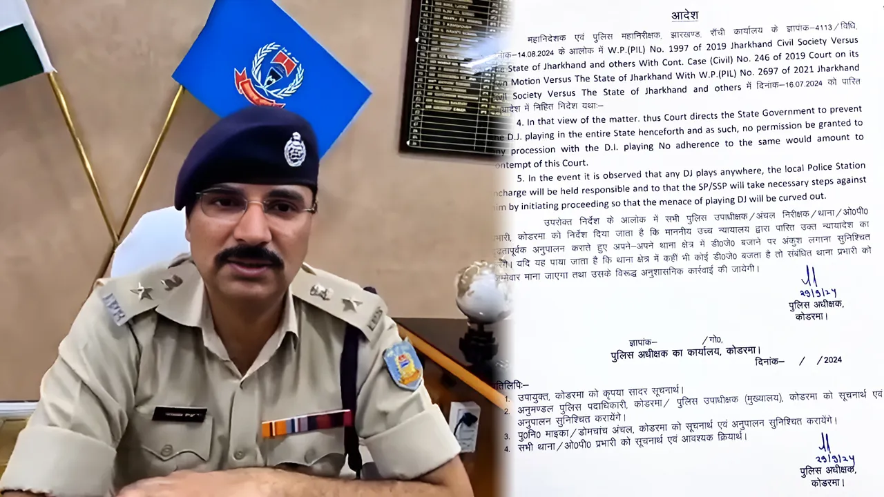 कोडरमा जिले के पुलिस अधीक्षक अनुदीप सिंह ने रविवार की शाम करीब 06:00 बजे आदेश जारी किया। इसमें उन्होंने जिले के सभी पुलिस उपाधीक्षक, अंचल निरीक्षक, थाना एवं ओपी प्रभारियों को निर्देशित किया कि वे माननीय उच्च न्यायालय के आदेश का सख्ती से पालन करते हुए अपने-अपने थाना क्षेत्रों में डीजे बजाने पर पूरी तरह से रोक लगाएं। उन्होंने यह सुनिश्चित करने के लिए निर्देश दिया कि कहीं भी डीजे न बजाया जाए।